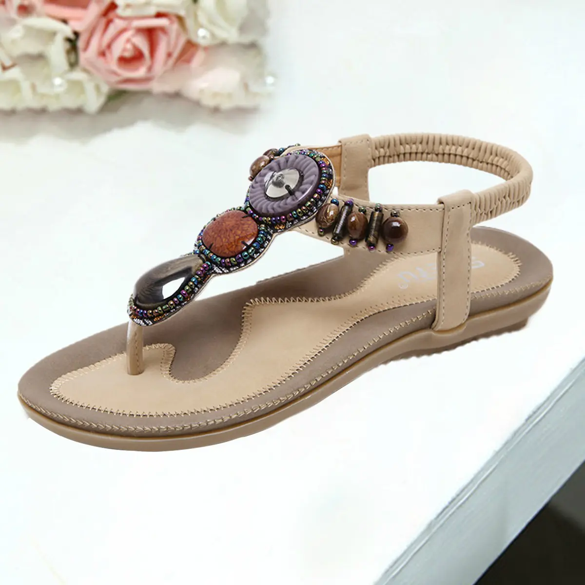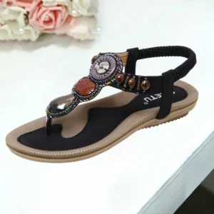 Step out in style with these bohemian-inspired T-strap sandals, featuring dazzling rhinestone accents that elevate your casual summer look. The crisscross ankle strap provides both fashionable flair and secure fit for all-day wear.